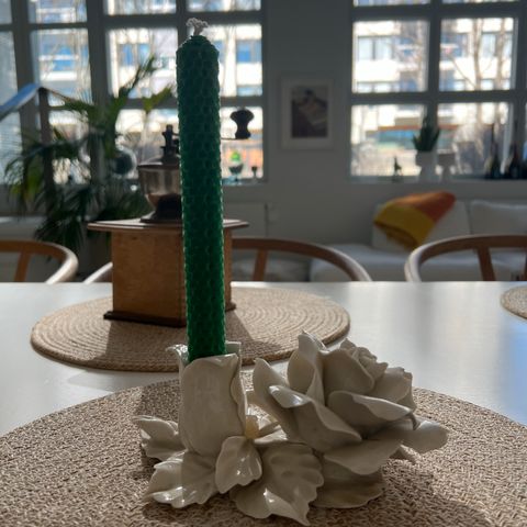 Myydään Vintage Bolsius ranskalainen lasinen kynttilänjalka.