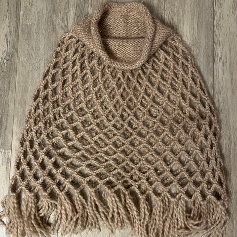Myydään ihana, lämmin poncho. Yhden koon vaate, mahtuu monenikäiselle noin 5-6 -vuotiaasta eteenpäin. Kaula-aukosta helman kauimmaiseen kohtaan on noin 56cm. Ostettu alunperin joltain torilta.