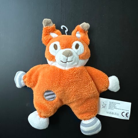 Myydään Ainu pehmolelu, kettu. Helisee heilutettaessa. Siisti käytetty kunto.