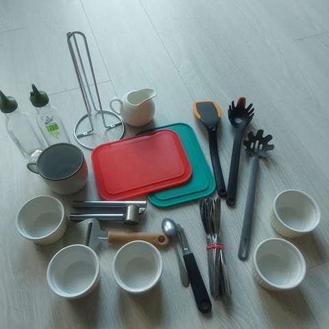 Sopii kauniiksi koristeeksi tai vaikka pikku kokin omiksi välineiksi. Koko n. 20cm