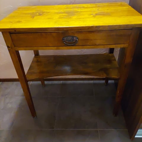 Siro, pieni ja kaunis sivupöytä. Etuosassa pieni vedettävä laatikko. Kannessa pieniä jälkiä, yleisilmeeltään hyvä.