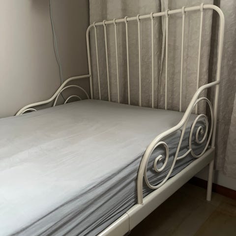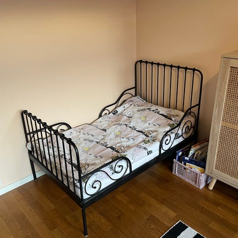 Ikean musta jatkettava minnen sänky. Siistikuntoinen. Patja tulee mukaan. Nouto Korsosta.