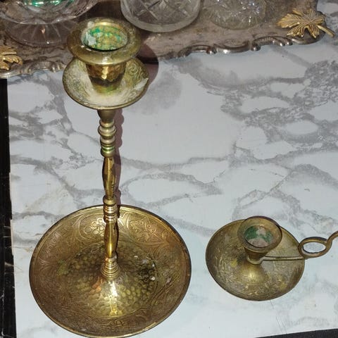 Neliskanttiset kynttilänjalat pienelle ohuelle kynttilälle. Sarpaneva.