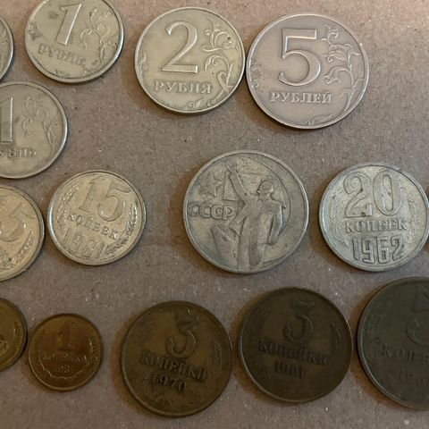 Neuvostoliiton kolikkosarja sisältäen eri arvoisia keräily kolikoita.