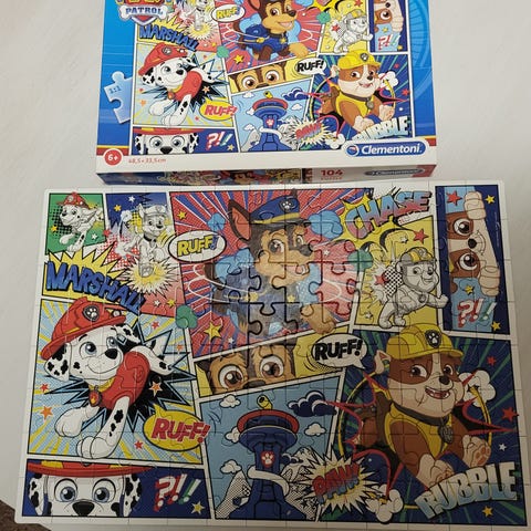 Myydään loput Ryhmä hau palapelit (kuvasta myyty viisi, ruksit päällä). 100 palan Kaja-palapelin yhdestä palasta puuttuu sarakat (ks. kuva).