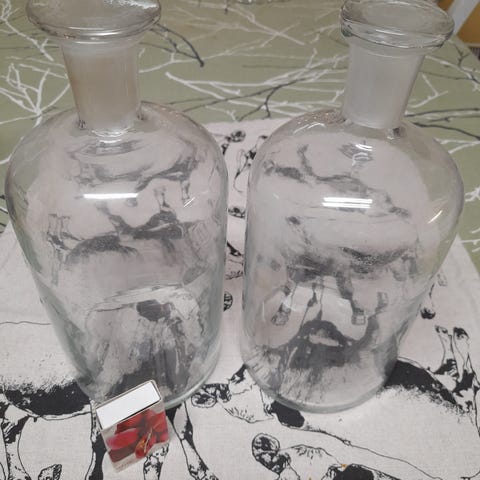 Ruskea apteekin lääkepullo. En ole kokeillut pestä puhtaaksi.