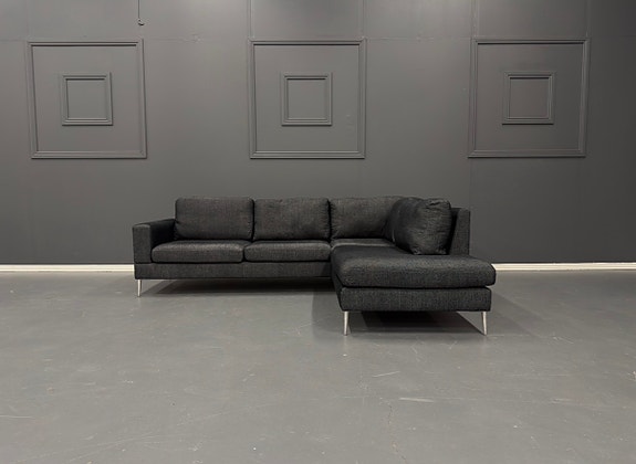 Äärimmäisen laadukas nahkasohva tyylikkäillä remmijaloilla.