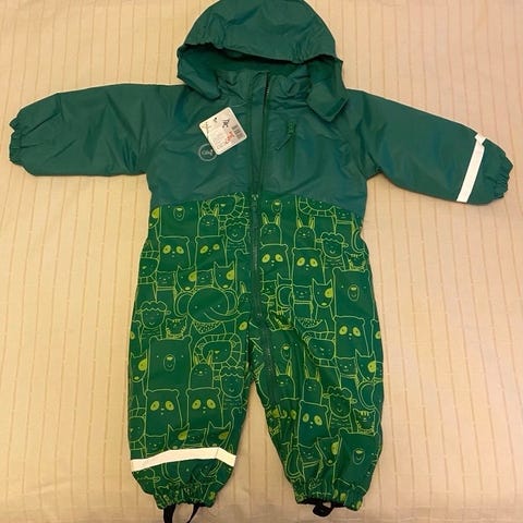 Hust & Claire sadepuku, koko 80, sininen väri, unisex-malli. Haalari on vedenpitävä ja sopii lapsille suojavaatteeksi erilaisiin sääolosuhteisiin.