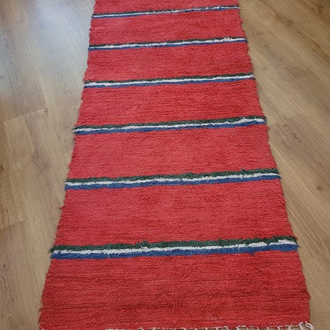 Pienet punaiset lankamatot kimalteilla. Koko 60 x 90
