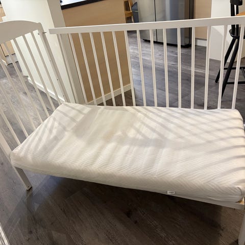 Valkoinen pinnasänky, on kulumaa ja käytönjälkeä, mutta suoraan käytöstä ja toimiva.