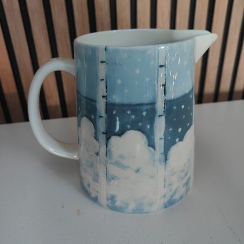 kannu on käyttämätön ihanalla talvikuvalla kuvassa kannu keskellä!