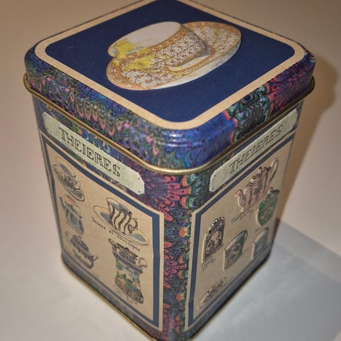 myydään hyväkuntoinen peltinen teepurkki . Kaunis vanha neuvostoliittolainen "Gruzinski Ekstra" -teerasia välikannella. Nouto