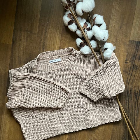 Uusi lasten villapaita, hieno lumihiutale kuvio edessä, 7-vuotiaan koko. Puuvillaa, ostettu USA:sta.