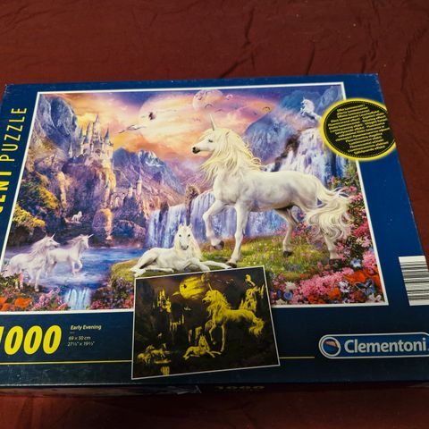 Myydään hyväkuntoinen 1000 palan palapeli. Kuva hohtaa pimeässä fluoresoinnin ansiosta.
