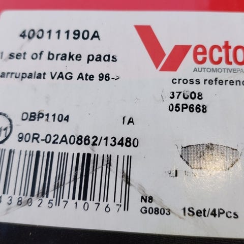 Kuvien mukainen Vector jarrupala sarja yhteen etupyörään.