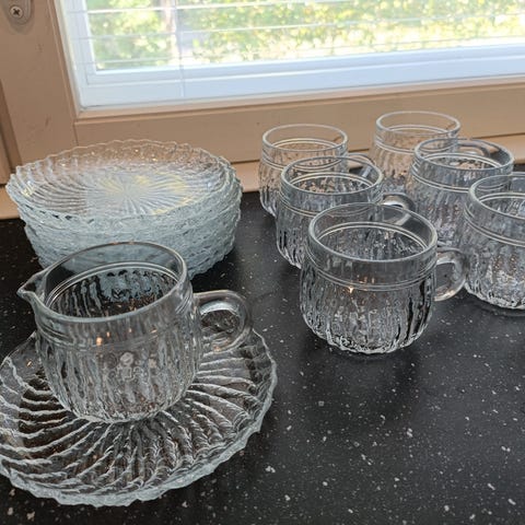 Riihimäen Merja Lasilautaset. 5 lautasta 4 €/kpl. Yhteishintaan.
