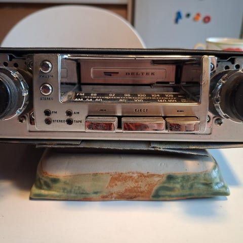 Vanha autoradio 50 tai 60 luvulta. Harvinainen. Toimivuudesta ei tietoa. Toinen säätönuppi puuttuu. Tosi hieno vaikka koristeena.