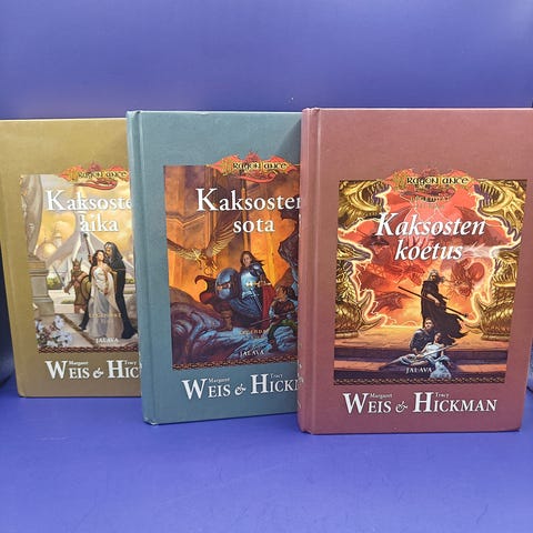 Myyntiin Weis & Hickman Kadonneet kronikat sarja. Kääpiökuilujen lohikäärmeet, Mustan kuningattaren lohikäärmeet ja Timalasivelhon lohikäärmeet. Postitus tai nouto siilitieltä