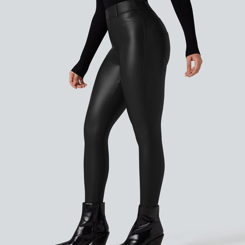 Halara Korkeavyötäröiset, joustavat PU-fleece-vapaa-ajanleggingsit taskuilla