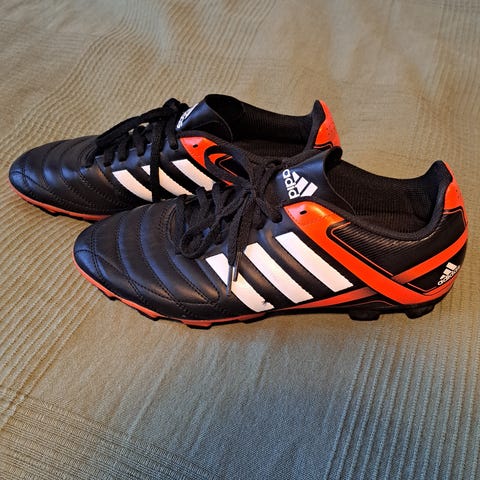 Kolmet jalkapallokengät eri merkeiltä: kaksi paria Nike-kenkiä ja yksi pari Adidas-kenkiä. Kokoa 42. Kaikki kengät 100e tai yksittäin 40e.