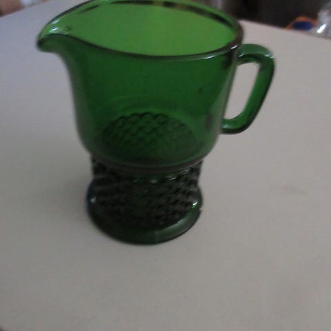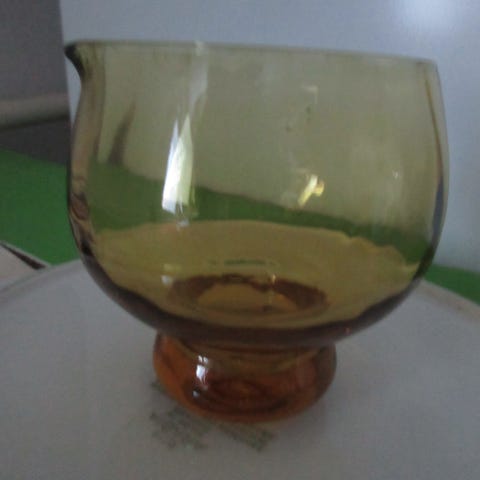 Kumelan käsinmaalattu kermakko ajalta ennen sotia, vielettiin vivahtavaa lasimassaa, hyväkuntoinen