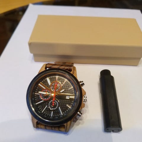 Puukello,uusi, 38mm, rasiassa, rannekjeen lyhentäjä mukaan