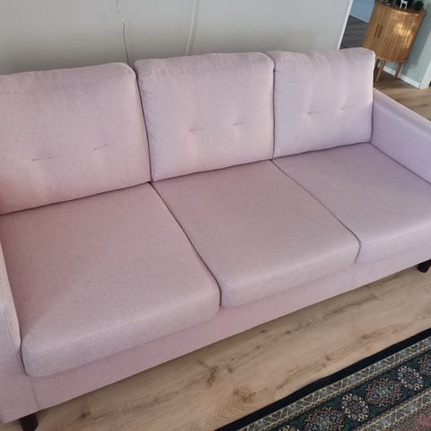 Siistikuntoinen, tummanharmaa 3-ist. sohva, joka ollut vierashuoneessa ilman käyttöä. Kiinteät ja napakat tyynyt. Jalat tummanruskeat.