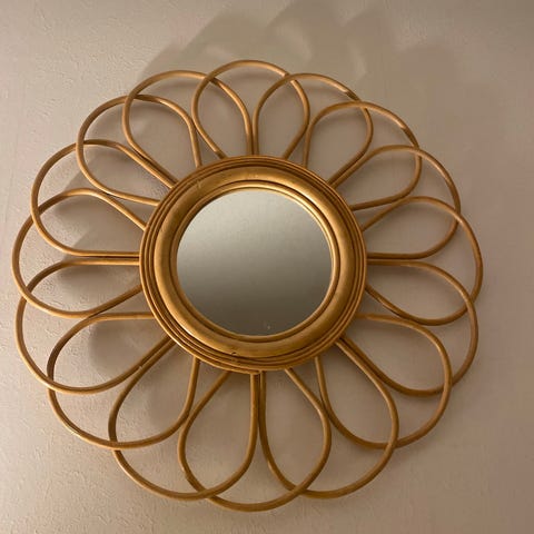 Sopivasti rouheutta rottinkipinnassa, peili ehjä ja hyväkuntoinen.