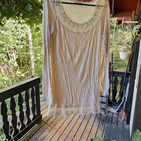 Bonprixiltä tilattu, käyttämättä jäänyt heräteostos, joka on nyt väärän kokoinen. Koko merkinnät ja muut tuotelaput olen valitettavasti leikannut pois, mutta otaksuisin koon olevan joko 44/46 tai 48/50. Kuitenkin kaikkialta niin avonainen ja joustavaa materiaalia, että ei niin tarkkaa.