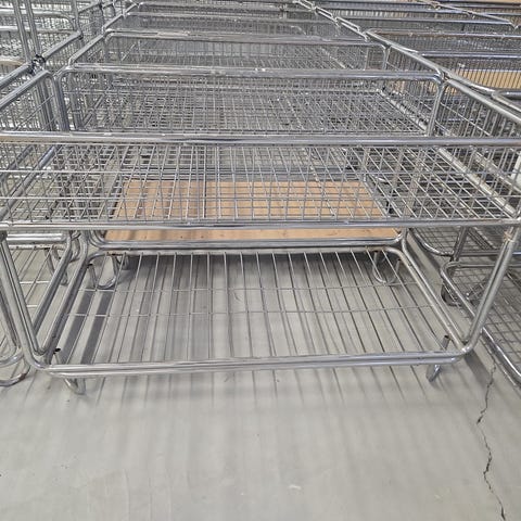 Lattiakiskoilla liikuteltavat varastohyllyt. Yhden hyllymodulin koko on Pituus 135cm leveys 63cm korkeus 200cm. Yhteensä 4 kpl hyllymoduleita joissa 30cm leveät hyllyt per puoli.
