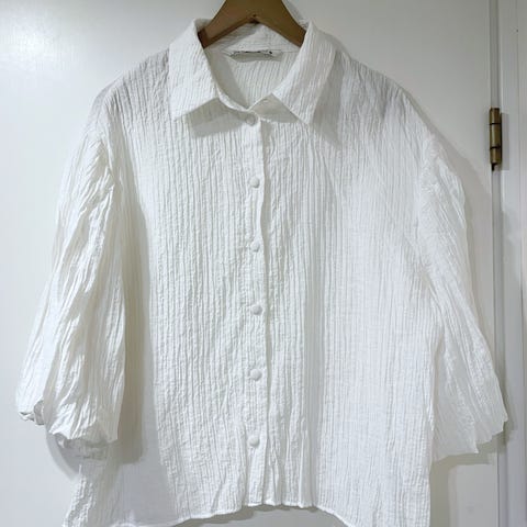 Zara Basic paita naisille, koko M, valkoinen väri, valmistettu puuvillasta. Paita soveltuu arkipukeutumiseen ja erilaisiin tilaisuuksiin.