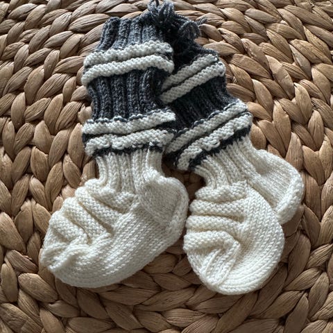 Myydään vauvan / vastasyntyneen sinivalkoiset villasukat. Jalkaterän pituus noin 9cm eli vastaa jalankokoa 16-18.