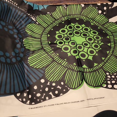 Myynnissä 2 kpl Marimekko ihanan värikästä kangasra verhoiksi tms sisustustekstiileihin tai vaikka mekkokankaaksi! Katsuji Wakisakan suunnittelema kuosi Green green. Toisen leveys n. 150 cm, pituus n. 440 cm, toinen n. 150x150 eli neliönmuotoinen pala. Pienemmästä saa tehtyä esim sohvatyynyt. Myydään erikseen. Isomman kankaan hinta 100 e, pienemmän 25 e. Liikun alueella Lahti-Heinola-Mikkeli-Savonlinna-Parikkala tai voin lähettää Toridiilillä tai ilman