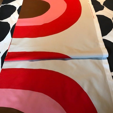 Talven keskelle kesää odotellessa ihanan kesäinen kuosi. Suunnittelija Aino-Maija Metsola. Sopii esim pöytäliinaksi, kappaverhoksi tai yksittäiseksi pitkäksi verhoksi. Tai muuhun sisustustekstiiliin, mekkokankaaksi jne. Pituus n. 198 cm. Liikun alueella Lahti-Heinola-Mikkeli-Savonlinna-Parikkala tai voin lähettää Toridiilillä tai ilman