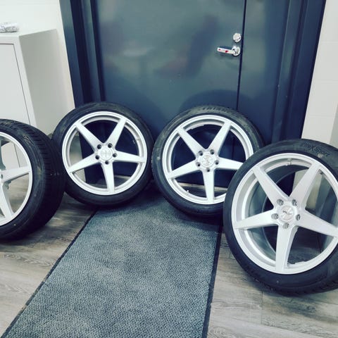 Auton mukana tuli komiat vanteet, jotka joutaa toisen auton alle.