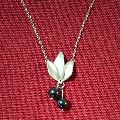 Uusi, mustikka kaulakoru. Ketjun pituus säädettävissä lisälenkillä 42/45/47 cm. Riipuksen leveys 18 mm, korkeus 38 mm.
