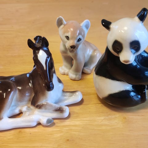 Lomonosov-figuureita, viisi lintua ja karhu yht. 115€.