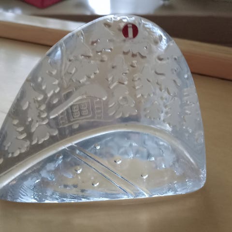 Muurlan koristeellinen lasilautanen, jossa on poroaiheinen kuviointi.