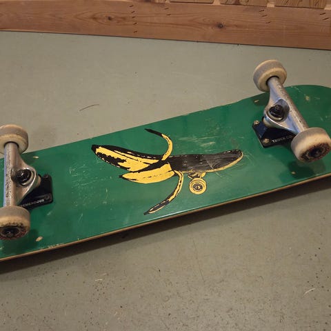 Myynnissä vähän käytetty skeittilauta. Näkyvissä kulumaa ja naarmuja.