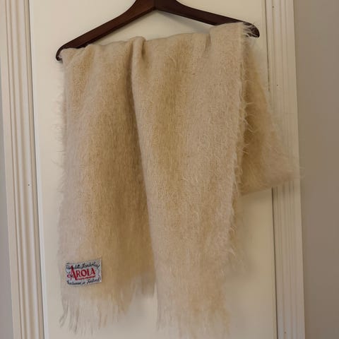 Arola vintage shaali, 100% villaa. Vähän käytetty. Pitkä sivu 150 cm. 70-luvulta.