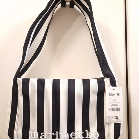 Marimekko kangaslaukku naisille. Laukku on valmistettu kestävästä kudoksesta/kankaasta ja sopii arkeen ja vapaa-aikaan. Värit ovat punainen ja sininen raitakuosi. Käytetty vain kerran 2h ❤️💙
