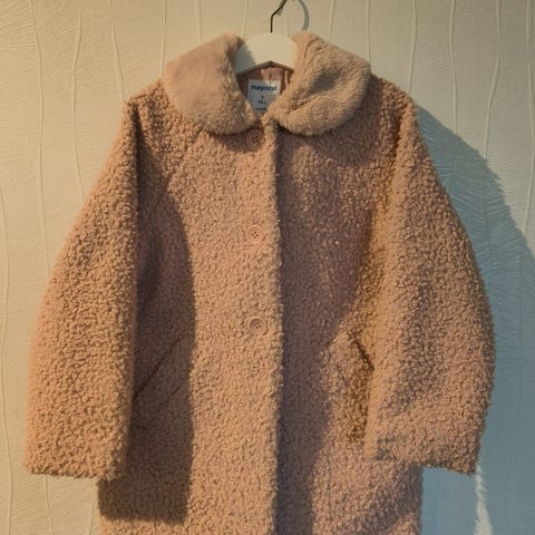 Vanha mutta siisti Mayoralin villakangastakki. Väri on lähinnä harmahtava roosa.