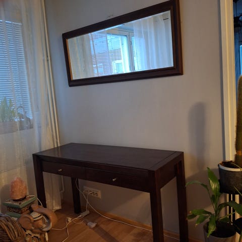 Ariston -06 sivupöytä, hyvässä kunnossa, alapuolella muutamassa kohtaa pinta kärsinyt mutta ei näy ulospäin. Kaksi laatikkoa. Tarjoa!
