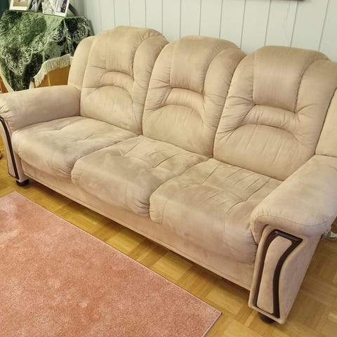 Kotimainen hyväkuntoinen kalusto, sohva ja kaksi tuolia.