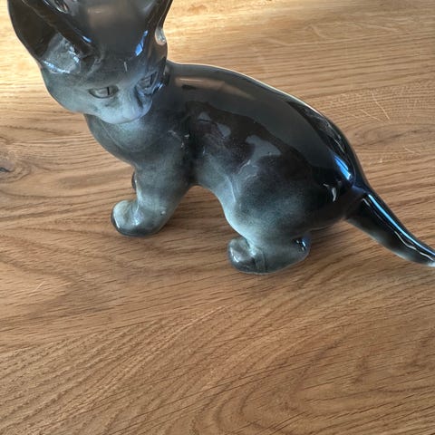 Michael Schilkinin keramiikka kissa, ruskea laikkuinen, keltaiset silmät.