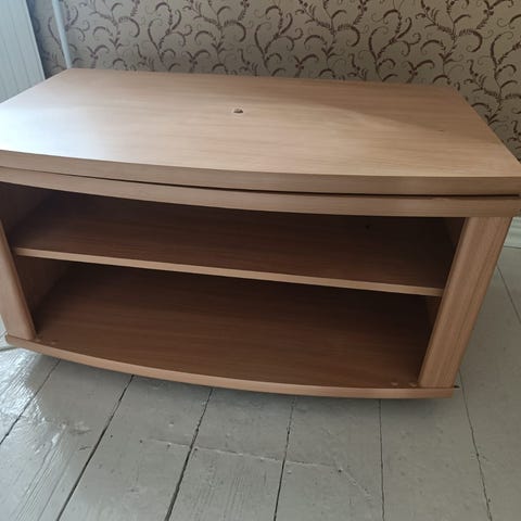 Vanha TV pöytä, pientä ajan tuomaa kulumaa.