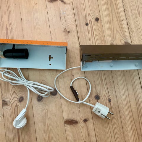 Erinomaisessa kunnossa olevat vintage ruotsalaiset Sjömarkens Armatur seinälamput. Puuta ja metallia