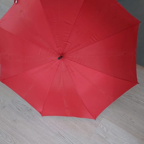 Kolme sateenvarjoa eri väreissä: sininen, musta ja punainen. Jokainen sateenvarjo on varustettu suoralla kahvalla ja kankaalla, joka tarjoaa suojaa sateelta.