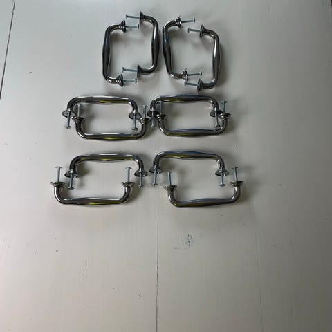 Kaksitoista kappaletta mustia vetimiä, kiinnitysväli 96 mm. Valmistettu kovasta materiaalista, soveltuu esimerkiksi kaapin tai laatikon vetimeksi. Olleet alle vuoden käytössä, pesty, kaikki yhteensä 30€ Keravalla