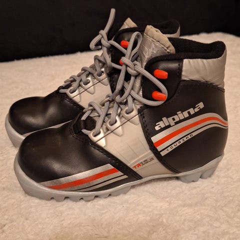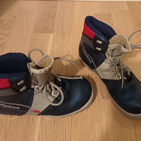Kuvassa olevat käytetyt Alpina TR15 monot, koko 30, sisämitta ~18,5cm, nnn-siteisiin. Sisäpuolella tussilla kirjoitettu lapsen nimi.